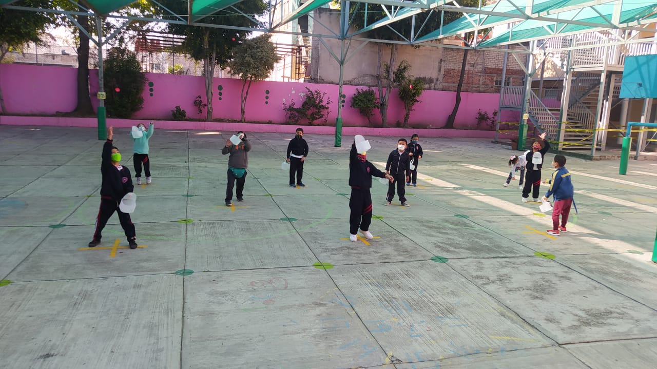La profesora Ana Luisa Zárate nos comparte un implemento que se utiliza para diversos juegos. Es un galón de plástico con dos cortes. Se puede apoyar en un hilo que se amarra al cuerpo para jugar a atrapar una ficha realizando movimiento de cadera. Ana Luisa propone también el juego “Limpiando la casa” donde distribuye fichas en lugares aleatorios en la cancha y por equipos tienen que recoger la mayor cantidad posible. Estos juegos fortalecen la coordinación óculo-manual, el trabajo cooperativo y la comunicación entre alumnos.